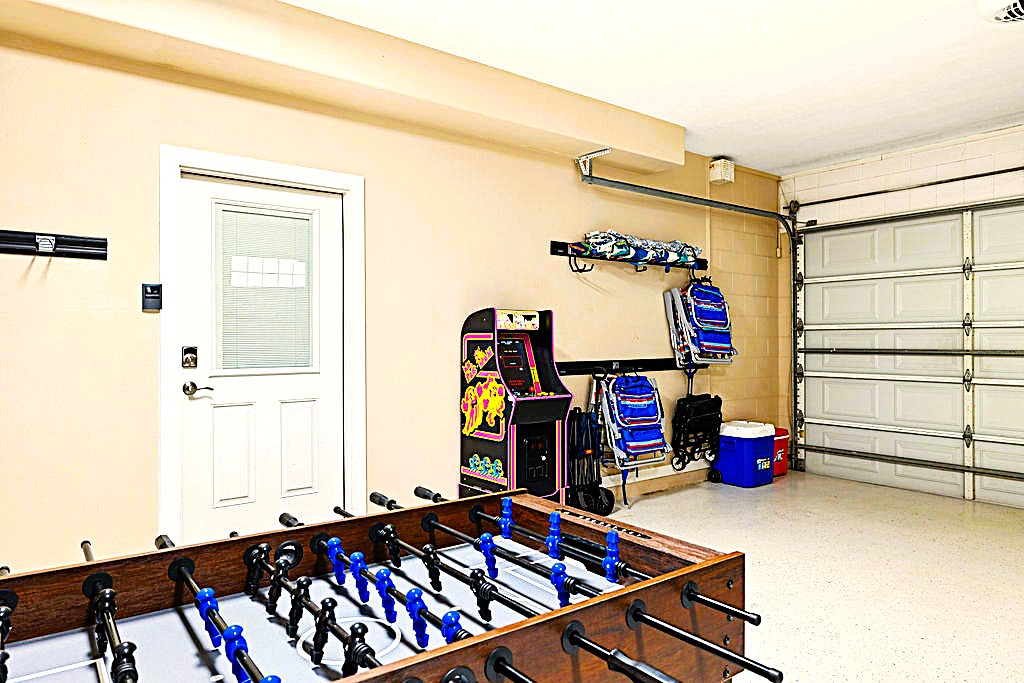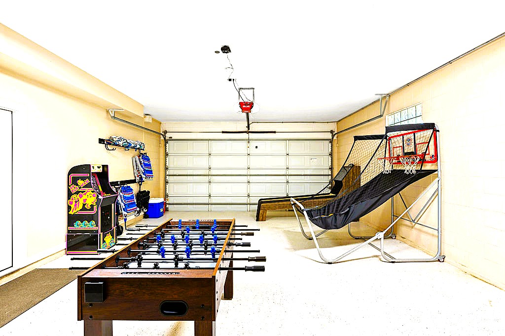 * World class shuffle board, skeeball game, arcade, basketball game, and foosball table